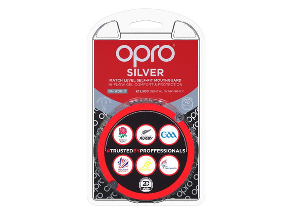 It is a match level mouth guard. The Silver mouthguard from OPRO is a mid-level mouthguard in our self-fit range. Available in a range of bright and vibrant colours, it is ideal for anyone who participates in any ball, stick or combat sport. The adult silver has a high resistant outer layer to absorb any blows.