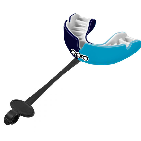 OPRO POWER-FIT MOUTHGUARD WITH STRAP NVY/SKY GEN 4